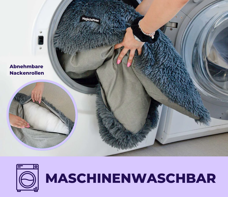 Sie können den abnehmbaren Bezug direkt in die Waschmaschine werfen! Ein Hund nimmt im Laufe des Tages eine Menge Schmutz auf, und ein großer Teil davon landet in seinem Bett. Daher ist es sehr wichtig, dass das Bett Ihres Hundes vollständig in der Maschine waschbar ist, damit er gesund bleibt.